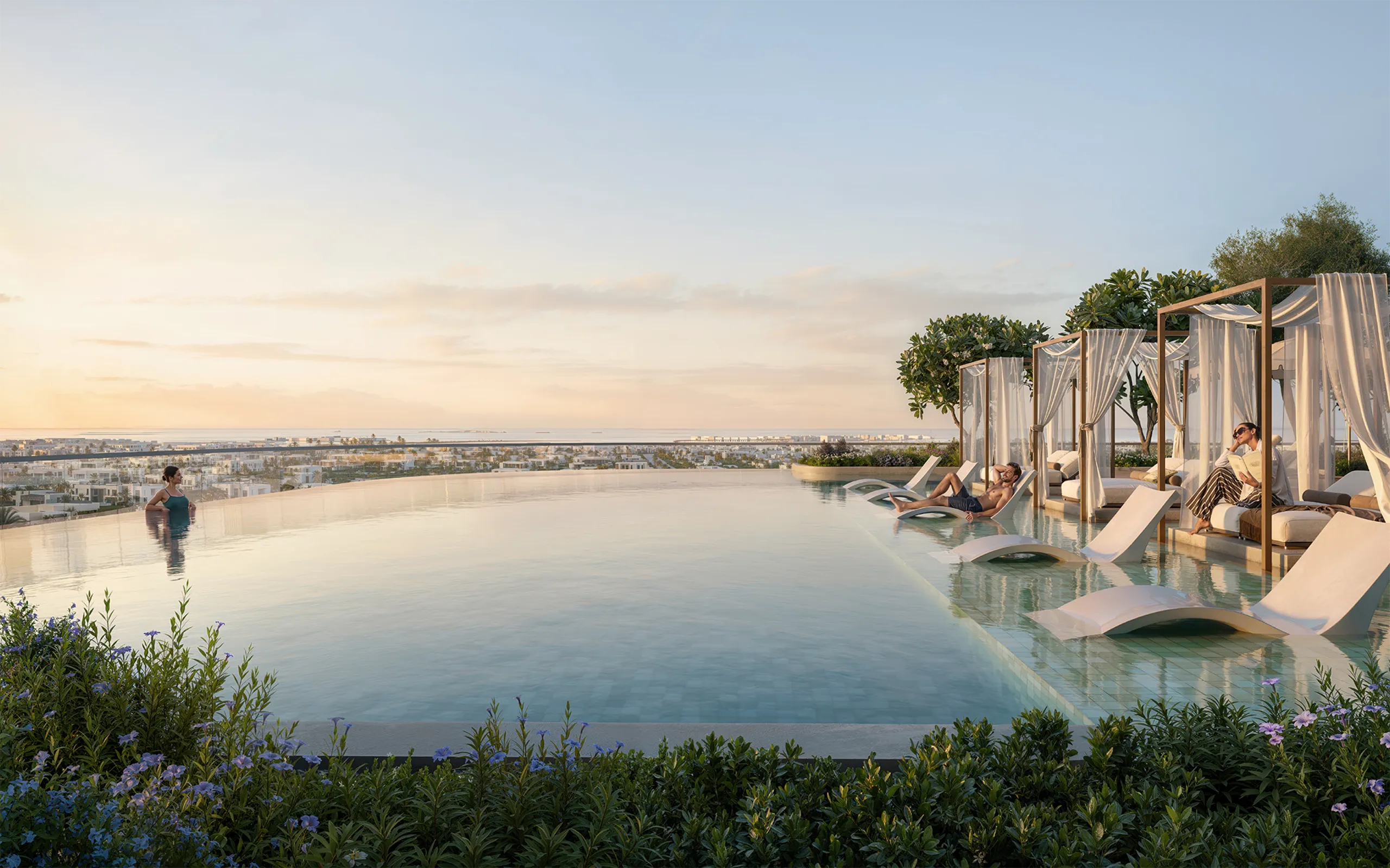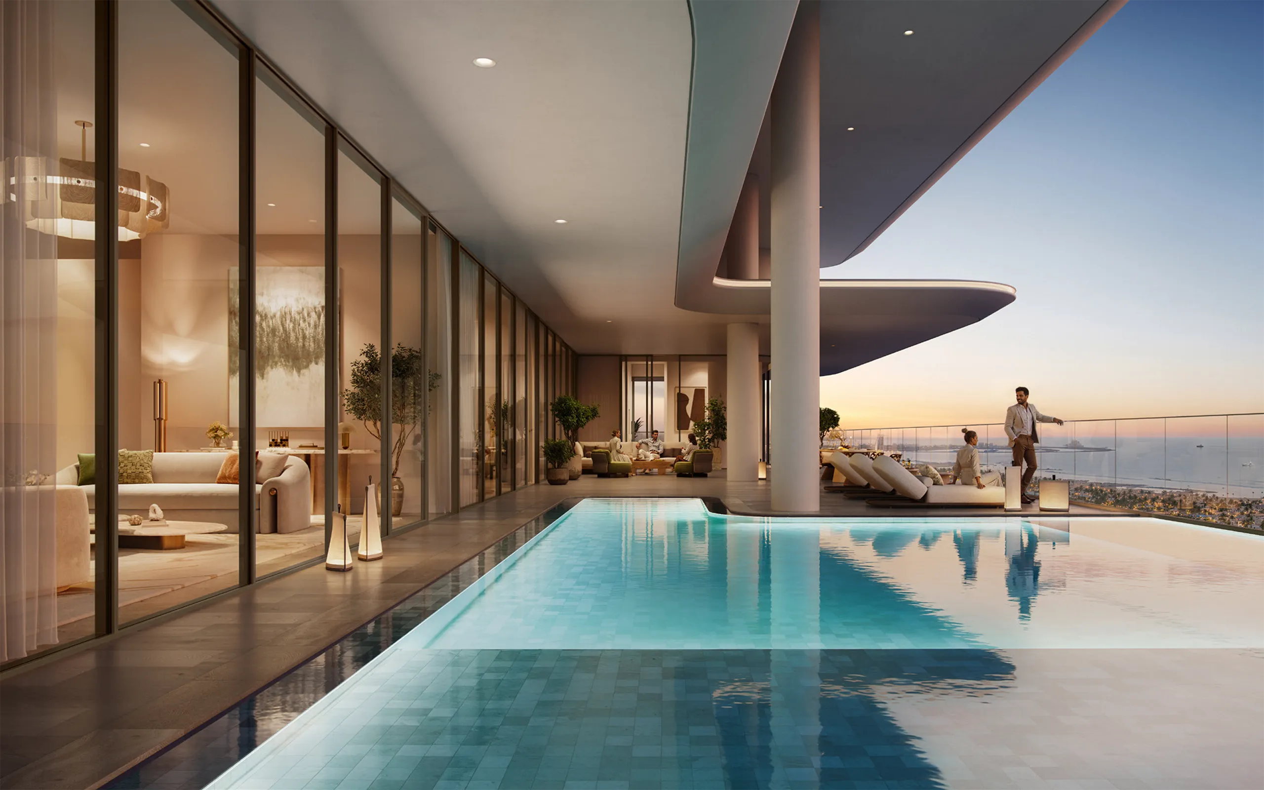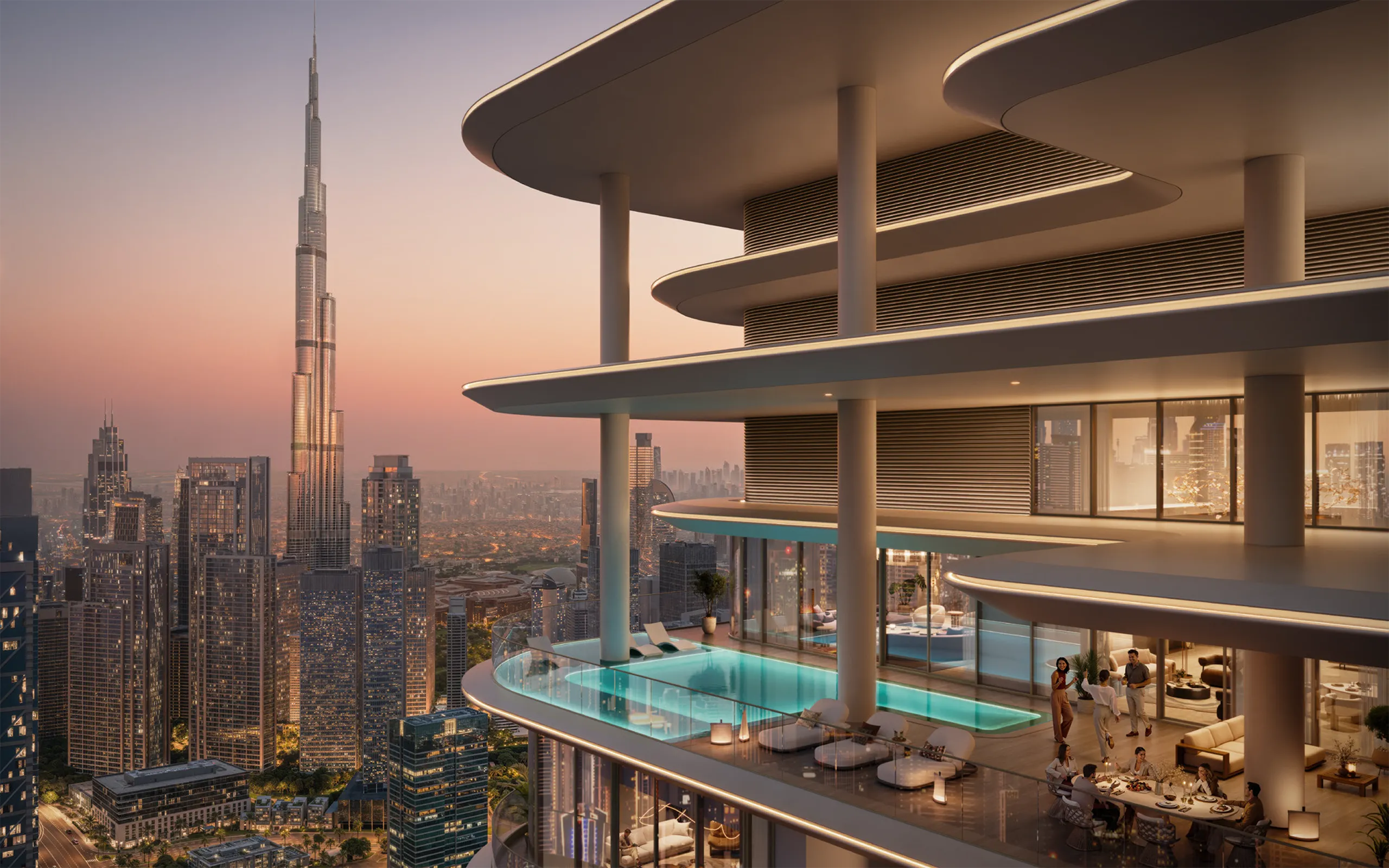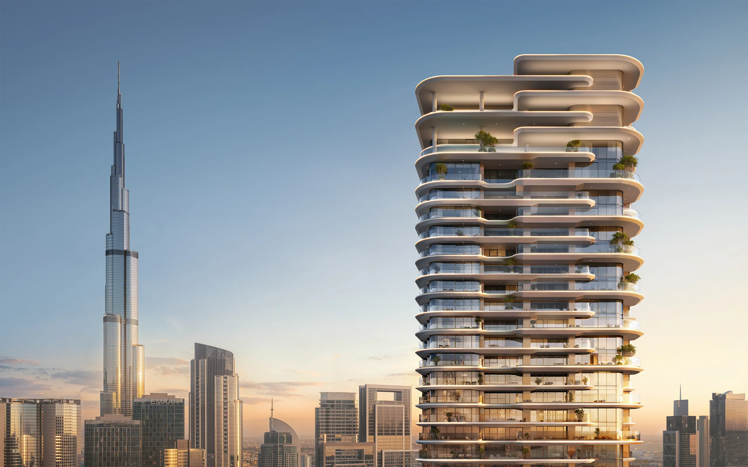 - Spacious balconies with skyline views