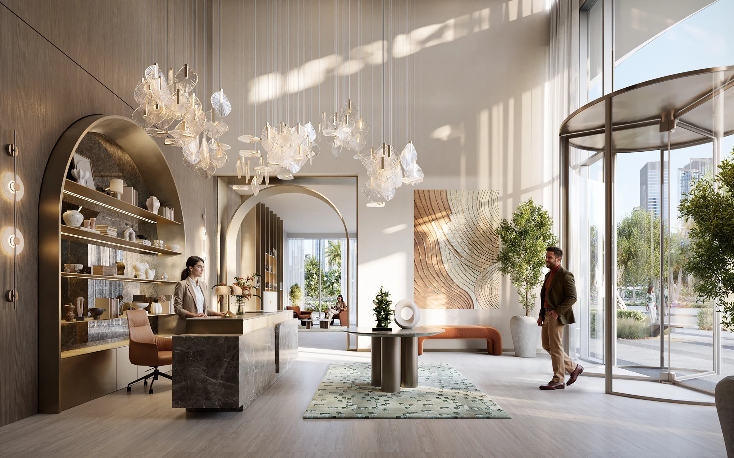Designed with a contemporary architectural vision, the tower features expansive glass façades and panoramic views of the Dubai skyline, including Downtown Dubai and the waterfront. Interiors are inspired by the Palace brand, offering a warm, elegant atmosphere tailored for modern living.